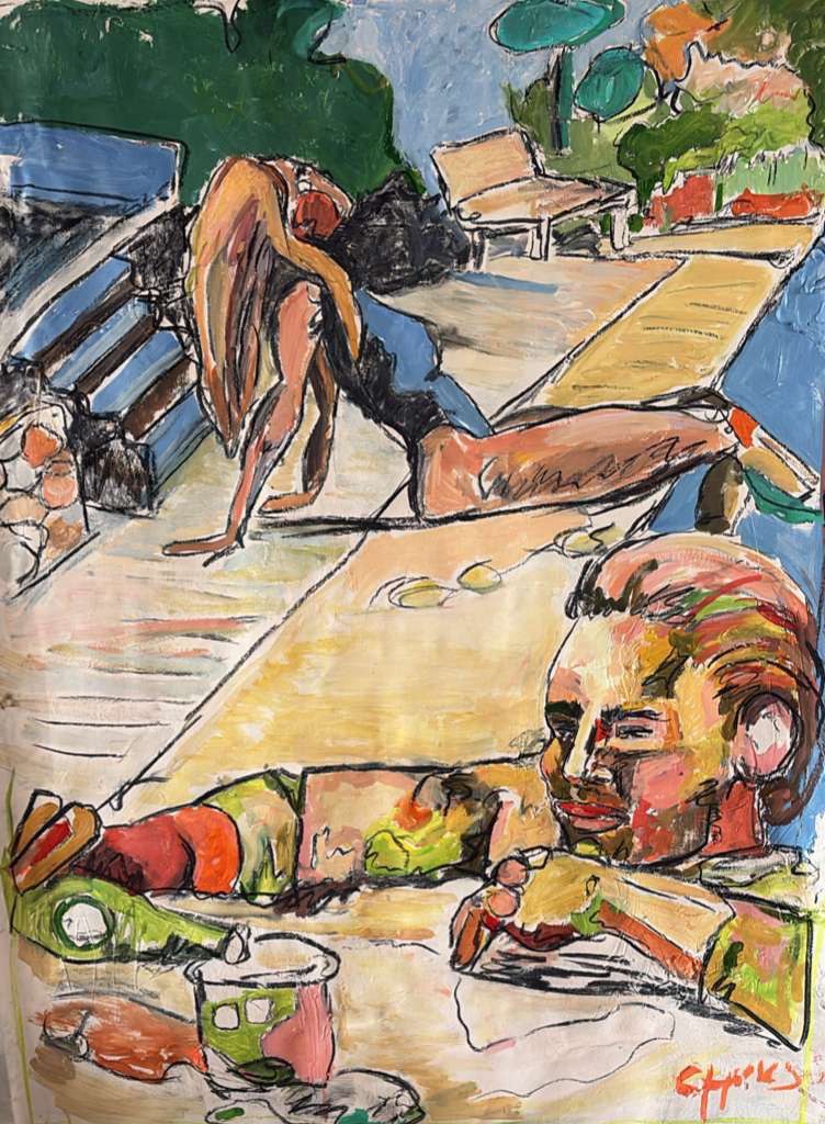 Acrylic and oil pastel on canvas